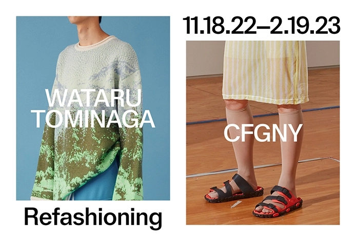 Japan Society presents the exhibition Refashioning: CFGNY and Wataru Tominaga from November 18, 2022 through February 19, 2023. The first show devoted to the art of contemporary fashion at Japan Society, the exhibition explores the work of CFGNY and Wataru Tominaga, two emerging fashion labels that engage with the intersections between fashion, art, and identity. Featuring garments, accessories, and textile-related works, the exhibition examines the ways in which these two practices—one based in New York, and the other in Tokyo—experiment with artistic mediums beyond conventional forms of dress, while challenging preconceived notions of gender and identity.